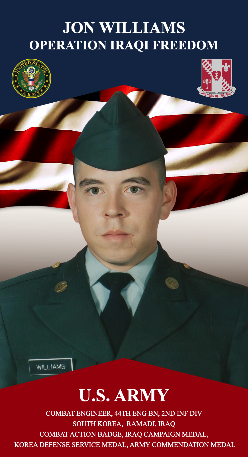Combat Engineer, 44th Eng Bn, 2nd Inf Div South Korea Ramadi, Iraq Combat Action Badge, Iraq Campaign Medal, Korea Defense Service Medal, Army Commendation Medal